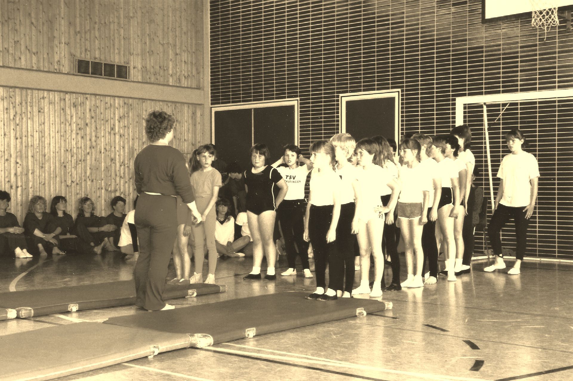In den Anfängen diente der Gemeindesaal sowohl als „Vereinslokal“ als auch als „Turnhalle“. Dort wurde am Boden und an verschiedenen anderen Geräten geturnt. Aber auch Freiübungen waren ein fester Bestandteil der regelmäßig stattfindenden Sportstunden.